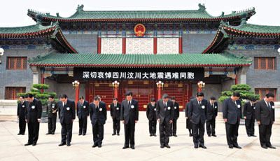 胡錦濤率領黨和國家領導人在中南海懷仁堂默哀。 新華社