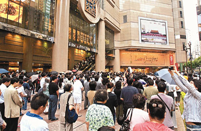 香港市民在時代廣場為四川地震遇難同胞默哀。 中新社