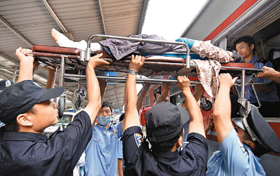 ■四川災區首趟運送206名受傷群眾的專列昨日離開綿陽,開往重慶。 新華社