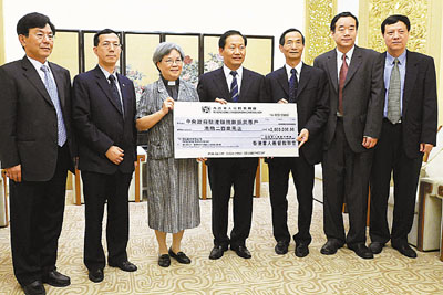 香港華人基督教聯會捐出200萬元,由彭清華副主任代表接收善款。