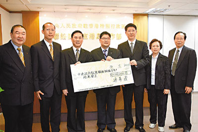 通善壇捐款10萬元,由港島工作部副部長吳仰偉代收。