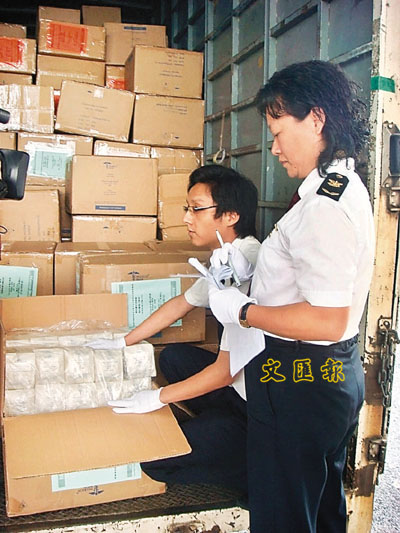 ■香港救援物資在深圳灣口岸接受檢疫查驗,過程僅12分鐘。本報深圳傳真