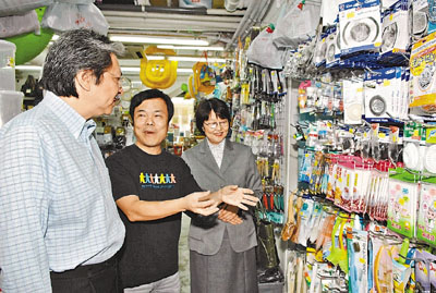 ■曾俊華聽取日用品店舖負責人的意見,並表示7月會推出紓緩通脹措施。政府新聞處