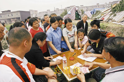 ■漢旺鎮災民排隊領取政府補助金。美聯社