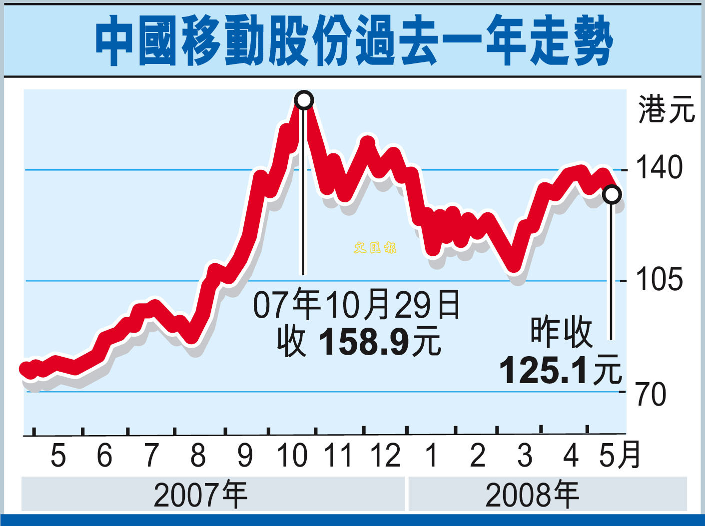 中國移動股份過去一年走勢 (圖)