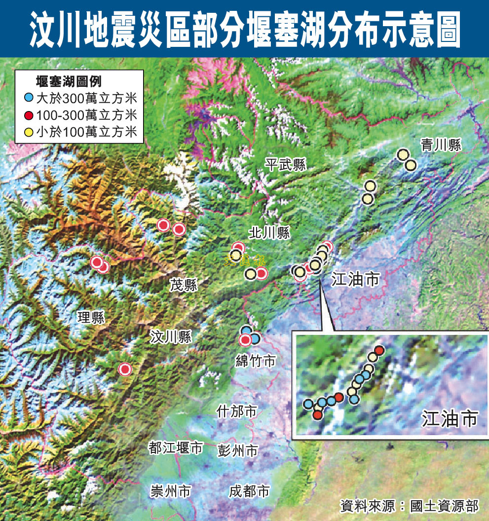 汶川地震災區部分堰塞湖分布示意圖 (圖)