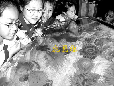 23日,為期半年的「Looking to Canada——勘望加拿大」水族展在北京海洋館開幕。在這裡,北京小學生可以看到來自加拿大太平洋海域的的五十餘種、近千尾低溫水域生物。中新社