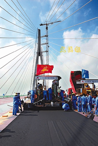 ■蘇通大橋主橋鋼橋面環氧瀝青攤鋪