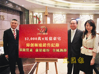 備受市場矚目的九龍豪宅何文田半山壹號前日正式推售,發展商之一長實地產投資董事黃思聰指出,半山壹號累積已售出逾130伙,套現逾40億元,平均每伙售價3,000萬元,用家及投資者均有,最大手洽購為一家族斥資逾1億元購入同一座的相連層數3伙4房單位。因應市場需求,發展商於今日以原價加推10伙高層單位,平均呎價13,946元。 ■本報記者:梁悅琴