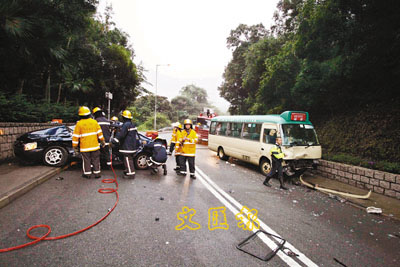 【本報訊】西貢昨清晨發生奪命車禍。一名患癌男子駕駛私家車送任職護士的妻子上班,在一處彎位時疑因天雨路滑失控越線,遭一輛專線小巴攔腰猛撞,兩夫婦均身受重傷被困,送院搶救後,妻死夫危,而小巴司機與一名女乘客亦告受輕傷。