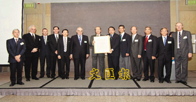 ■港大校長徐立之(左八)感謝何鴻燊(左七)對大學的支持。圖為二人與港大多名學院院長合照。港大提供相片