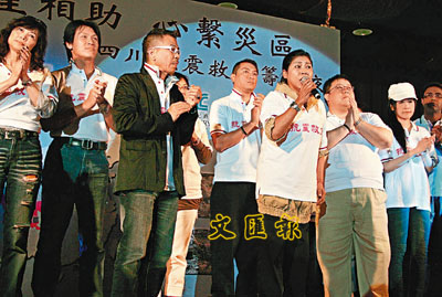 ■澳門博彩業籌款晚會上,香港藝人用歌聲表達對四川的祝福。