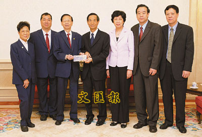 香港道教青松觀捐100萬元賑災,由黎桂康副主任接收。