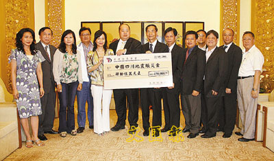 張華峰代表香港證跡學會捐45萬元,由黎桂康副主任接收。