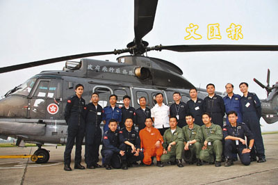 【本報記者鄭佩琪、譚靜雯 本報前線報道組向雷、趙鵬飛廣漢23日電】香港政府飛行服務隊的1架超級美洲豹直升機及1架運載設備及物資的捷流41型定翼機,飛行超過8小時、經過在桂林、貴陽兩次落地加油,今日下午5時48分抵達四川交通運輸部救撈局廣漢基地,支援空中救援工作。連日來,飛行服務隊在重災區汶川山區,合共救出78位傷者;其間遇過一位少年,為救被困父親徒步3日3夜離開山區找外援,在港救援隊協助下終獲大團圓結局,隊員說這個故事「聽到都眼濕濕」。
