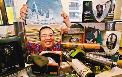 在滑鼠上,波鼠已算較舊了,故Razer推出的Boomslang是給予大家收藏之用,用鐵盒放著,非常珍貴。「99」收藏的是舊版,他現正競投一個更舊的版本。採訪完畢後,「99」要將一件一件的滑鼠及鼠墊整整齊齊地放回背包中,他對滑鼠及鼠墊愛護之情,身旁的記者也感受到。