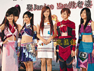 【本報訊】(記者 李慶全)網上遊戲《天龍八部Online》之「我要娶Janice Man做老婆」活動昨日於荷里活廣場舉行,現場安排六十位玩家即場進行比賽,勝出冠軍成為「準新郎」接受「新娘子」Janice Man頒發獎品,而玩家中最年輕者為十二歲,也有女孩子參加。