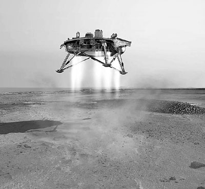 ■「鳳凰號」以逆向噴射減速著陸的電腦模擬圖。 路透社