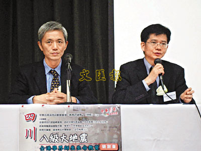 ■蔡國光(左)表示,「川流不息」計劃將安排港教員協助當地學校重建。旁為教評會副主席何漢權。