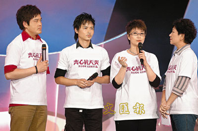 【本報訊】(記者 梁靜儀)亞視前晚為四川地震舉行的《齊心抗天災—祝福音樂會》,亞視多位藝員萬綺雯、呂晶晶及珈穎等,聯同「藝人之家」的陳敏兒、張晉、奚秀蘭等,以及多個宗教團體派出的表演者一起出席活動,為四川的災民送上祝福。