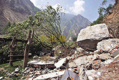 ■地震過後,四川臥龍大熊貓保護區受損嚴重,昔日大熊貓團團、圓圓的美麗別墅變得慘不忍睹。中新社