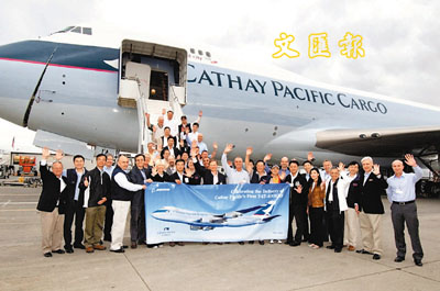 ■國泰為應對油價高企,已採購大量省油飛機。圖為國泰航空貨運團隊與貨運代理一起在西雅圖接收首架波音747-400延程型貨機。圖片由國泰提供