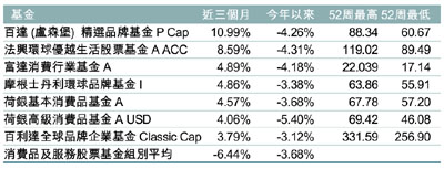 而在基金組別附表的近三個月排行榜中,標榜投資高檔精品的基金回報皆遠優於一般消費品牌的基金。可見在精品基金中,只有布局擁有高檔精品的股票,才有可能替投資者賺取較優越的回報。