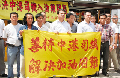 ■一班跨境貨櫃車司機抗議廣東省柴油短缺及出現炒賣的情況。本報記者聶曉輝 攝