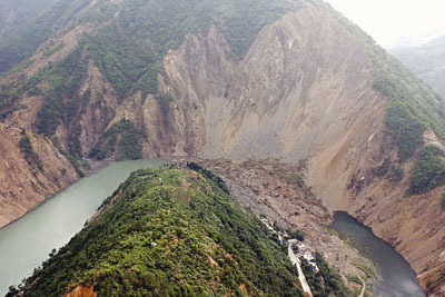 記者在位於擂鼓鎮的指揮基地看到,現場停著50多輛工程車,世界上載重量最大的俄羅斯米-26直升飛機正不停地將這些重型工程車運送到堰塞湖邊。