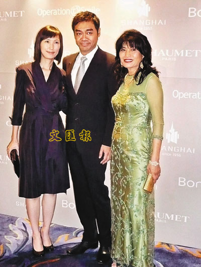 ■劉青雲、郭藹明夫婦出席慈善晚宴,與微笑行動中國基金副主席曾學韞合照。