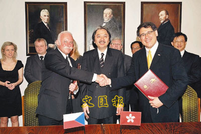 【本報訊】特區財政司司長曾俊華昨日在捷克共和國首都布拉格見證香港律師會與捷克共和國大律師公會簽署諒解備忘錄。他表示,諒解備忘錄的簽訂體現了捷克的企業家精神,而這將促進兩地在法律專業層面上建立新的夥伴及合作關係,在未來的日子,相信其他專業團體也有類似的發展。他同時結束為期一周的中歐訪問,認為今次行程取得滿意成果,而隨行的商界訪問團亦找到了很多互惠互利的商機。其中一些項目,例如排污交易以控制全球暖化,更獲得迅速的回應。