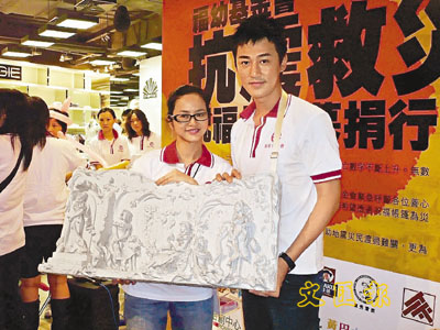 ■林峰以三萬元購得葉蘊儀親手造的黏土浮雕,一起行善,特別開心。
