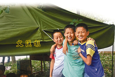 帶著「六一兒童節到了,你們還好嗎?」的牽掛,本報記者探訪了都江堰、綿陽、綿竹、安縣、什邡等地的多間帳篷學校,發現那裡全都笑語滿天。一位志願者老師說,「在帳篷學校,每天都是兒童節」。是的,我們相信,只要有愛,這些歷經磨難的孩子會像以前所有六一兒童節一樣快樂。