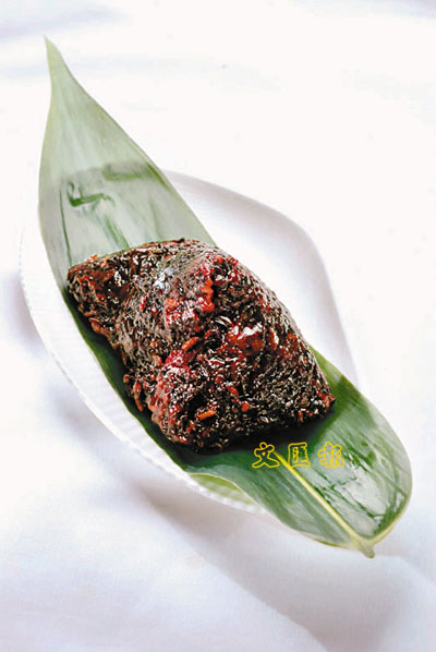 欣圖軒的有機蘋果黑糯米甜粽,同樣以較健康的黑糯米為材料,加上有機眉豆、有機紅腰豆及黑野菌等,分外健康。此外,大廚更利用有機蘋果天然的果糖,代替不健康的人造糖分,不但高纖,味道也格外清甜。