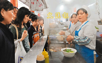 ■全國36個大中城市重點監測的食用農產品價格總水準已連續8周呈環比略微回落態勢。圖為5月,市民在上海食店精打細算購買食物。 法新社