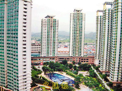 ■深圳一手住宅的價格4月份環比漲價12%。圖為位於皇崗口岸的皇御苑。 資料圖片