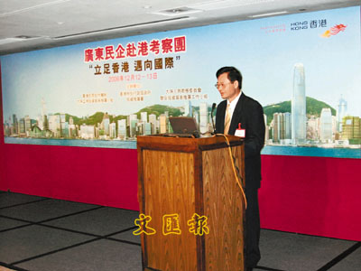 據了解,此次考察團的內容主要是讓企業家們了解,香港投資、經營狀況以及投資香港的相關法律法規。今年考察團在內容安排上,較之往年有新的亮點和區別。往年的考察團,企業關注的焦點都是融資問題,就是看中香港這個融資平台,為企業發展提供所需資金。今年的考察團,除了繼續關注融資問題之外,更多企業關注的是工業產品創意設計、產品包裝、市場推廣等問題。陳耀桓稱,這個新情況表明了粵港民間合作的空間越來越廣闊,也表明了當廣東民營企業發展到一定階段的時候,他們需要利用香港更多的現代化服務手段,特別是生產性的服務業。