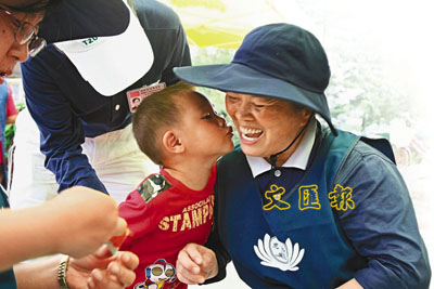 ■洛水鎮的孩子對即將離開的來自海峽對岸的「姑姑」依依不捨。 李東波、趙鵬飛攝