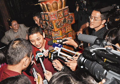 ■3日,大昭寺27歲僧人洛吉向記者講述自己從「3.14」事件之後思想轉變的經過。新華社