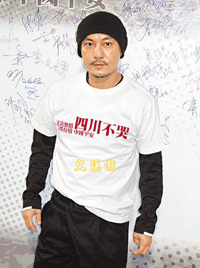 剛完成新戲《奪鏢》拍攝工作的健仔,表示會支持所有有關賑災的活動,稍後會義務拍攝中央電視台開拍的二十集賑災劇,他說:「這是我入行以來首次不知自己角色和對手就接的戲,我只知會到災區拍攝,而劇情就是真人真事,講地震前後的事和救援工作。(張茜可會參與拍攝?)我有問過她,她有點想又有點猶豫,怕觸景傷情,她現在已經回復得不錯,不過當她見到電視上的小朋友也會好傷心。」問到健仔會否希望到災區探訪?他說:「想,但我不希望因為一時衝動便約幾個朋友上去,不想幫不到忙反而阻手阻腳。」