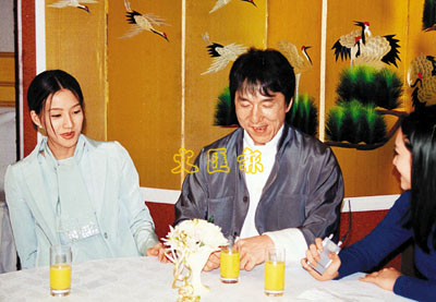 圖中所見是二○○○年至二○○一年成龍在嘉禾出品的影片《特務迷城》中之韓國女主角,名叫金玫,「玫瑰」的玫,由拍此片成龍看到「韓國姓金的女孩子都很漂亮」,所以五年後二○○六年再開一片《神話》也用姓金的韓國女主角,後面這一位名叫金喜善,也是出名的大美人。