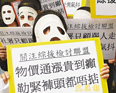 ■立會財委會通過今年8月開始,調高綜援標準金額4.4%。圖為綜援受助人早前到政府總部請願。 資料圖片