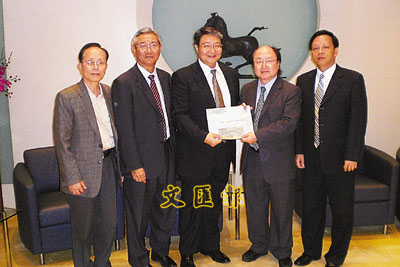機電儀器商會捐33.5萬元,由協調部周志榮副部長接收。