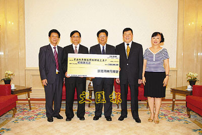 旅港海南同鄉會捐20萬元,由周俊明副主任接收。