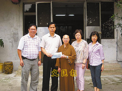 佛教大光園慈善基金會代表捐10萬元, 由新界工作部潘紹新副部長接收。