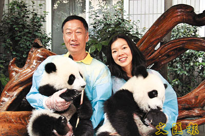 ■郭台銘曾與曾馨瑩一同認養大熊貓。 資料圖片