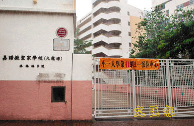 ■由於天雨關係,小一統一派位中心昨暫停開放。圖為位於九龍城41校網的派位中心嘉諾撒聖家學校。 本報記者李志樑 攝