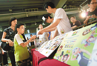 本港50間遊戲公司合作舉辦賑災版遊戲展,今、明兩天在尖沙咀海港城SportX多功能運動場設義賣場,以低價售賣電玩遊戲、福袋及設Cosplay服裝義租拍攝等,大會並號召市民捐出二手遊戲機送到地震災區,入場費10元。由於吸引有大批機迷到場參與善舉,大會昨午預先派發入場證。本報記者潘政祁 攝