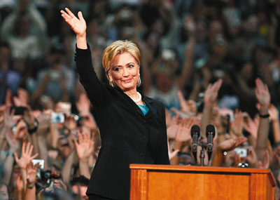 奧巴馬宣布贏得民主黨總統候選人提名戰後4天,美國前第一夫人希拉里昨日在華盛頓發表演說,與支持者作別,正式結束爭奪民主黨總統候選人提名戰,並呼籲支持者團結一致,支持奧巴馬在11月帶領民主黨入主白宮。