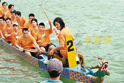【本報訊】(記者 李慶全)鄭伊健昨日以「鄰舍大使」身分,代表鄰舍輔導會參加西貢區龍舟比賽,伊健率領的「智醒金龍隊」表現出水準,最後贏得「特能中龍賽」季軍,伊健笑謂也不枉他度期返港參加比賽。